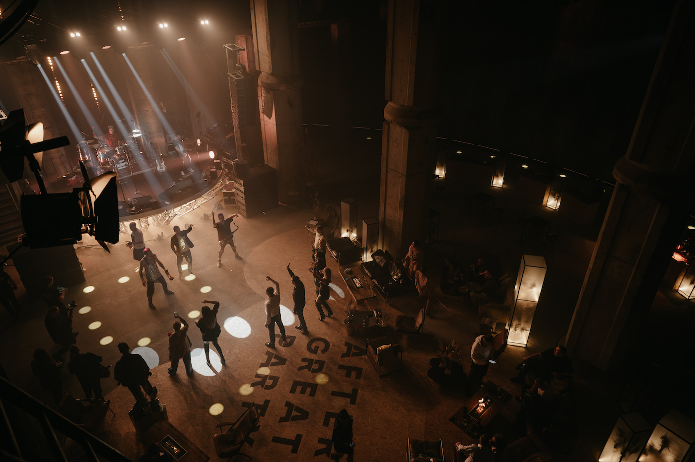 The second day took place in a real concrete collector to create a grand and cozy atmosphere. We used soft furniture, fire on the tables, warm lighting, and textured materials. The food was in a "street food" format, prepared over an open fire.