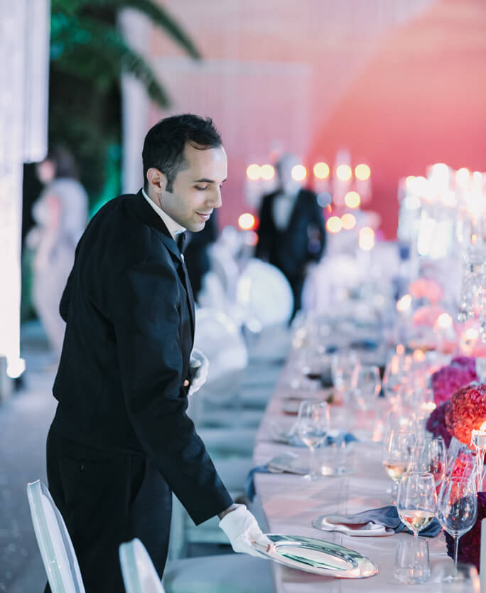Technical equipment and decorations were delivered from different countries under strict control of our wedding coordinators. We divided different zones of responsibility between 12 wedding coordinators. More than 150 other people worked with them at the venue on the day of the wedding
