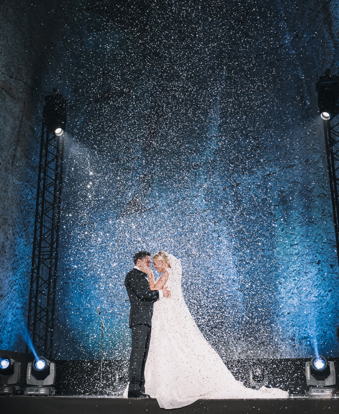 The cave that we chose for the wedding ceremony had never been used as a wedding venue before. The fulfilment of our idea demanded much technical equipment, light and loud music. That's why it was essential to guarantee safety for the guests of the wedding. So, geologists had been checking the cave for several months, then a team of builders reconstructed the cave and made it stronger.