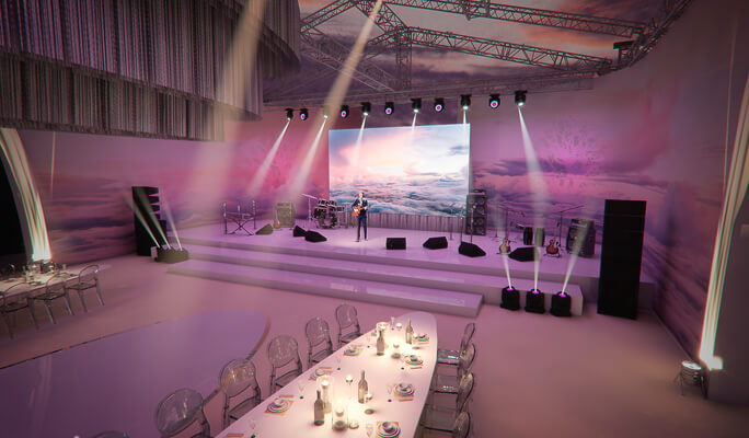 As one of the hotels where the wedding celebration took place was situated in the volcanic zone, it was forbidden to build anything there, but we managed to created a unique, extremely light ground for this event, which was absolutely safe.