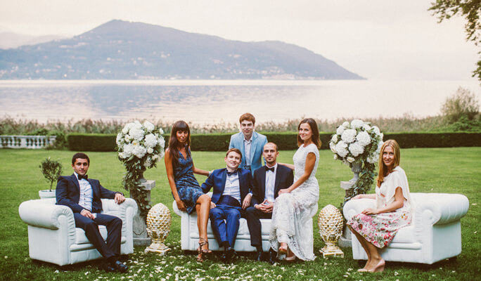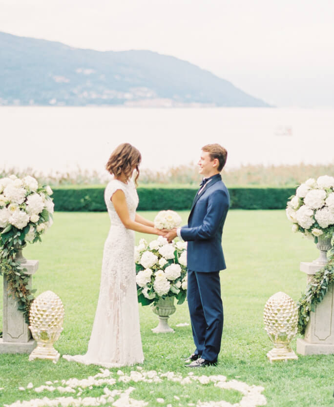 The ceremony took place on Lake Maggiore surrounded with mountain landscapes. Breathtaking Italian nature, classical and laconic architecture of the local villas… Everything around this place makes up a consistent and inimitable composition that we extended and completed harmonically with wedding décor.