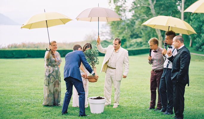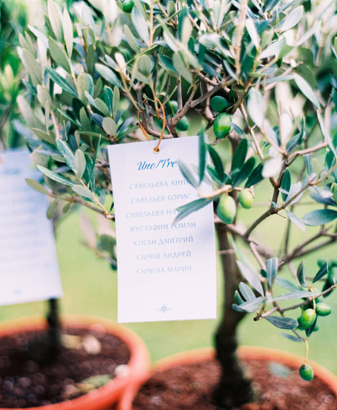 Italy is a country of family traditions that’s why we decided to full Daria and Evgeniy’s wedding day with new traditions. Both the newlyweds and their guests enjoyed them. When the bride and the groom exchanged their wedding rings, the guests showered the couple with macaroni instead of rose petals. After the ceremony Daria and Evgeniy planted together an olive tree.