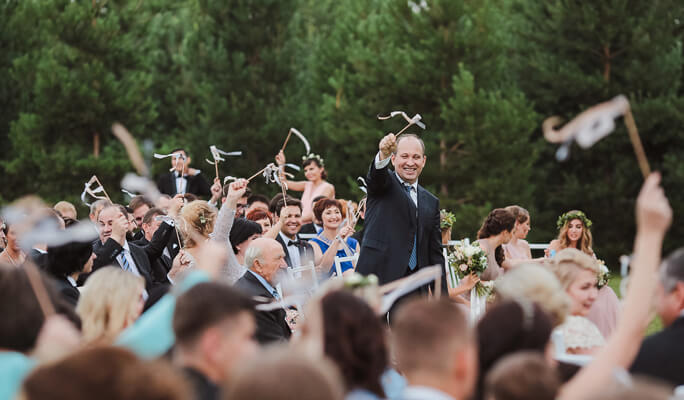 It has been a week since our wedding but all memories are still fresh in my mind. And I’m not the only one. Every day we receive messages with similar comments from our parents and friends. The wedding didn’t leave anyone cold. Gena proposed on the 11th of June 2014 and the wedding was held on the 27th of June 2015, so we had almost a year at our disposal. We visited many different agencies but after our meeting with the wedding planning agency Dlya Dvoih we realized that it was made for us. We spoke the same language. It was extremely important for us to be understood. Wedding planners from this agency helped us to develop our ideas, instead of imposing theirs on us, as it sometimes happens. Another peculiarity of this agency is its attention to details. Each card, each bell and care for our guests- these are very important details that one shouldn’t ignore. By the way, all guests noticed the focus of the agency on details. I want to comment on the planner of our wedding Toma in particular. We liked her very much. She turned out to be an ideal wedding planner for us. It was very easy to work with her and our meetings usually lasted extremely long as we had much to discuss. We also want to thank tremendously Masha and Nastya. They are absolutely crazy idea hamsters and just great women. Our wedding wouldn’t have been that great without them. Photographers. The photographers Anna, Alexey and Sergey are great professionals and every photo made by them is a real work of art. We enjoyed working with them and despite the fact that photo shoots lasted many hours, we didn’t even get tired. Videographers. I have been following our videographer Jana for a long time and I really love her lavender videos. We wanted a video like this for us. A video penetrated with laugh, smiles, feelings, a play of light and etc. And she made it for us. Sasha was a real discovery. He is an extremely nice and funny man; it was very comfortable and easy to communicate with him. During our shoots everyone got soaked to the skin several times, but it didn’t affect the quality of our photos and video. The Master of ceremony (MC). Egor Pirogov is an ideal emcee. His jokes fit in every situation and touching moments made everyone cry. Decor. Long before Gena proposed, I had been following Julia Shackirova’s studio on Instagram. I was amazed by their projects and dreamed to work with them once. And indeed they did an amazing job. Our wedding decor was like from a fairytale. Invitations. Invitations – that’s another story. They amazed all our guests and set a high bar for the whole wedding. We liked the idea that they looked like books. Our guests can put them on their bookshelves. If once they stumble across them, the invitations will remind our guests about our wedding. Dresses. It took us 4 months to create an ideal dress for me in Atelier Moscow. And the result met all my expectations! The second dress was by Israeli designer Liz Martinez. It turned out to be not only beautiful but also very comfortable. It had even pockets! All dresses for the love-story and pre-wedding photo shoots were sewn by a wonderful designer Masha Golubeva. She understood the conception of the wedding at the first moment and all dresses made by her were really from a fairytale! Makeup and Hair style. Lena is a real fairy! She succeeded in making me more attractive without adding me some years, which was a very difficult task! The look was absolutely fairy and I enjoyed the result. And besides Lena is a great woman. We spoke non-stop and thanks to her I wasn’t nervous on the wedding day at all! I will apply to her again! Preparations on the wedding day. On the wedding day I got enough sleep, had breakfast and then Lena came to me to do makeup and hair. I expected to have butterflies in my stomach, as it used to happen before exams, but to my surprise I was absolutely calm. Then my fiancé and his friends, photographers and videographers, and bridesmaids arrived. The house was full of guests. Everyone laughed, joked, had fun and prepared to the wedding without stress. When we arrived at the wedding venue, Gena was walking towards the ceremonial arch. And exactly at that moment I started to panic. Everything was so festive and touching! I arrived and my father opened the door of my car. He held my hand tight and calmed me down. He said that I was very beautiful and it gave me strengths to go to the arch. When the marriage officer was speaking, I couldn’t hear anything. I looked at Gena trying not burst into tears. But when Nicosha was bringing our rings, I couldn’t control myself anymore. As soon as we finally said 'I do' to each other I felt relaxed again. I was the happiest person in the world then. Our wedding dinner was beautiful, sentimental, touching and at the same time extremely funny and heartwarming. We watched video presents and nobody could hold back tears. It isn't easy to resist the temptation of being lazy and just don’t make videos like these, but I can tell from my experience that couples should take part in all possible shootings. Video presents are very touching details of every wedding and besides when you get older, you can show them to your grandchildren. Then we danced till we dropped to the music of Rockfellers, Banderos and a super DJ Eva Vostrokova! The decorators from Julia Shackirova's studio transformed the restaurant beyond recognition! I didn't have enough time to examine the welcome zone and all activities there! Now I can see all details of our wedding venue in the photos made by Sergey Zaporozhets. The celebration was very beautiful and interesting! To sum it all up, the wedding day ended way too fast. It was like a wonderful moment that we will never forget! We had a great wedding we dreamed of for us and for all 250 guests. Thank you so much!