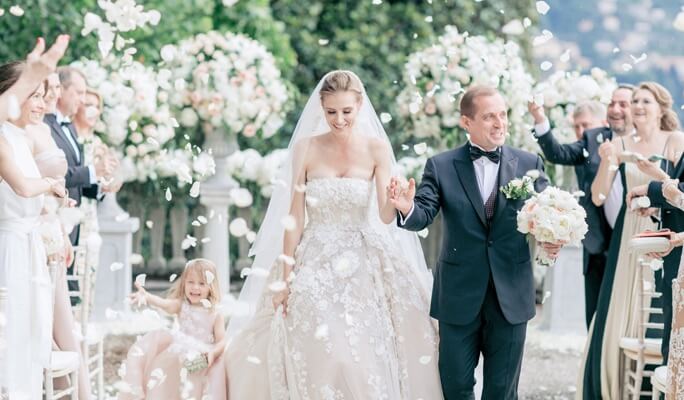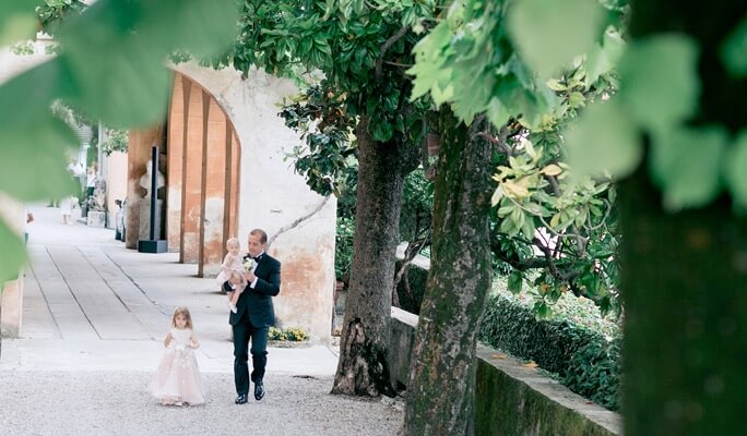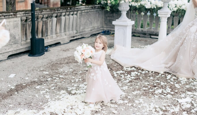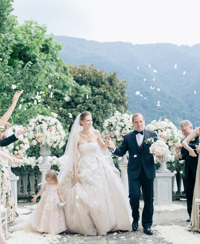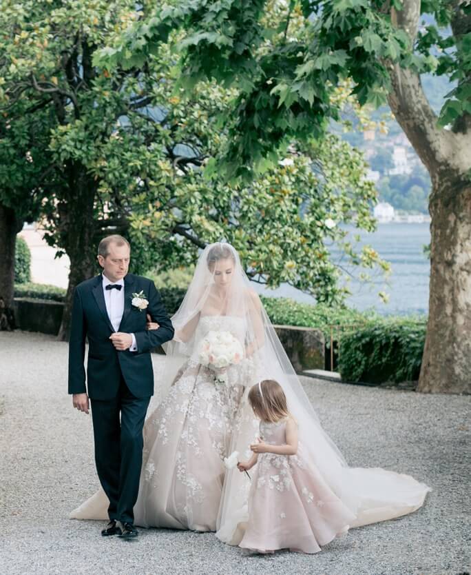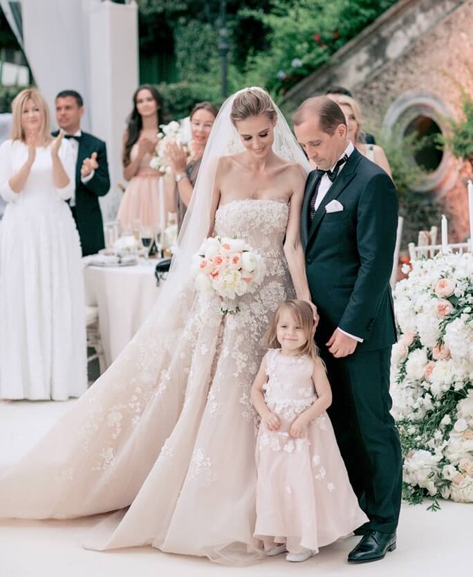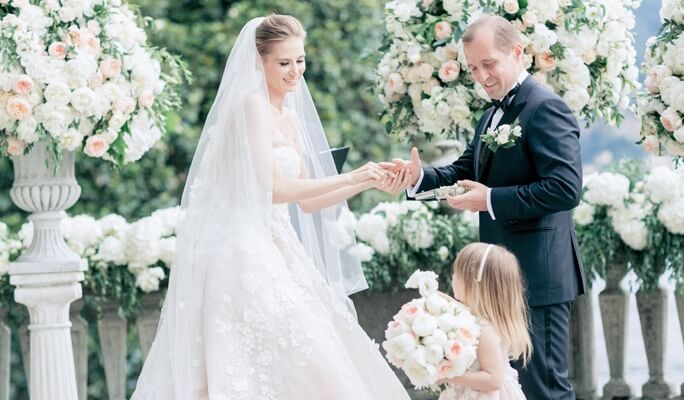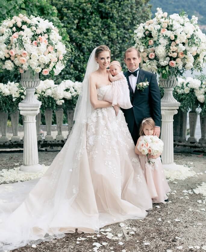 Anastasia and Sergey already have two daughters who were not only present at the wedding, but also took an active part in their parents’ wedding ceremony that was held on the balcony, covered with green, with a view on Lake Como.