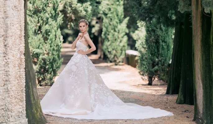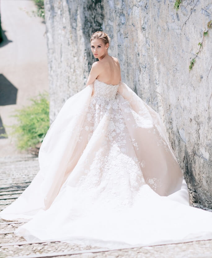 For the ceremony the bride chose the dress from the collection by Elie Saab with a long and luxurious train. We ordered a special room and a car for this wedding dress.