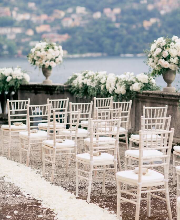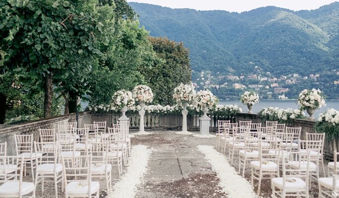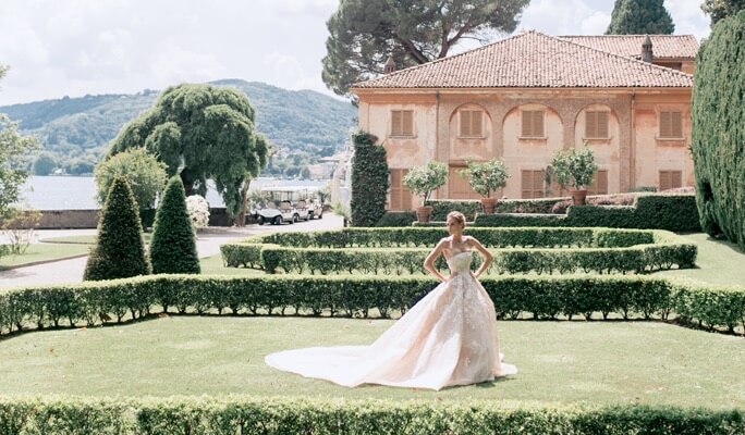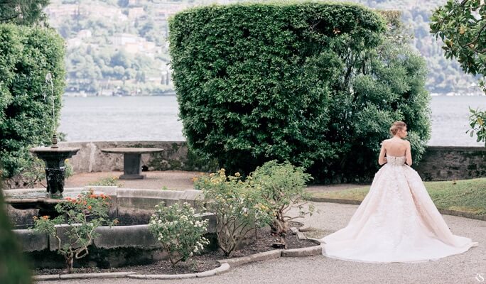 The chamber wedding was organized in keeping with the best traditions of Haute Couture. We chose one of the most beautiful villas in Lake Como — Villa Pizo as a venue for the wedding. This place has a great history and ancient architecture, antique interiors and unbelievably beautiful landscapes around. The villa is famous for John Ledgend’s wedding.