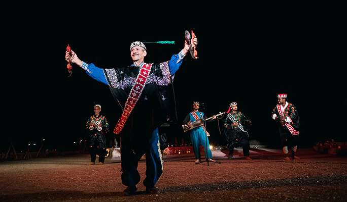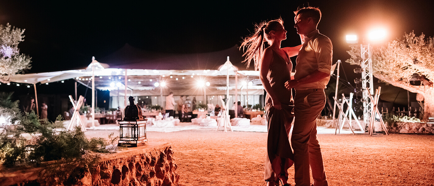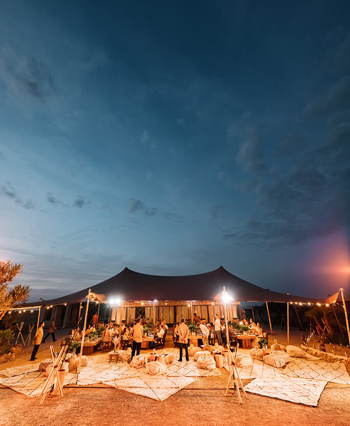 The dark gold of the Moroccan desert Agafay, the ridges of the Atlas Mountains, traditional Moroccan music and dishes - it was such a soulful evening that immersed the couple and guests in the atmosphere of the mysterious Morocco and prepared them for the upcoming wedding day.