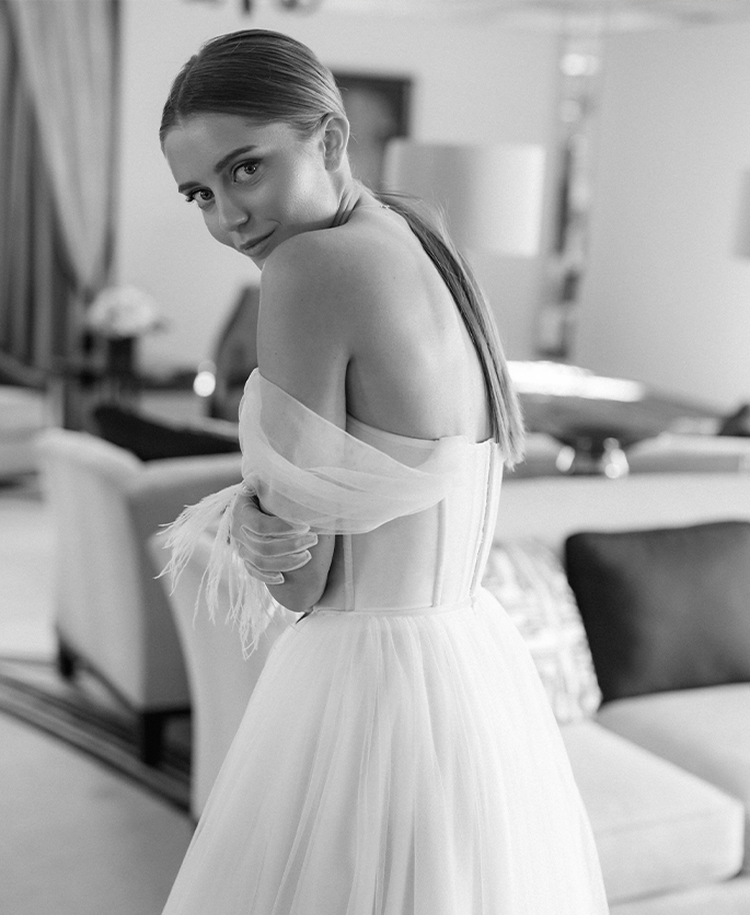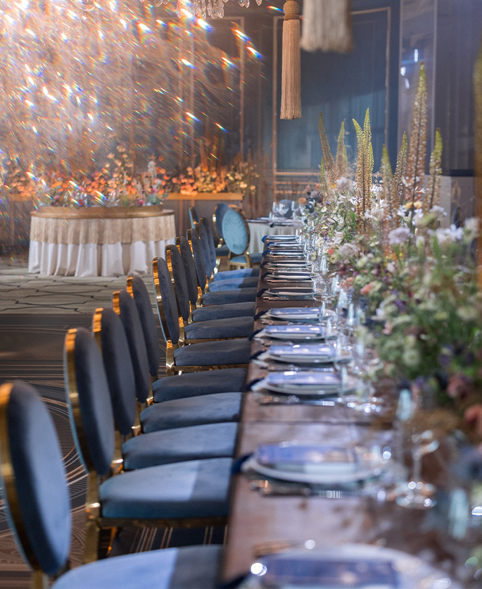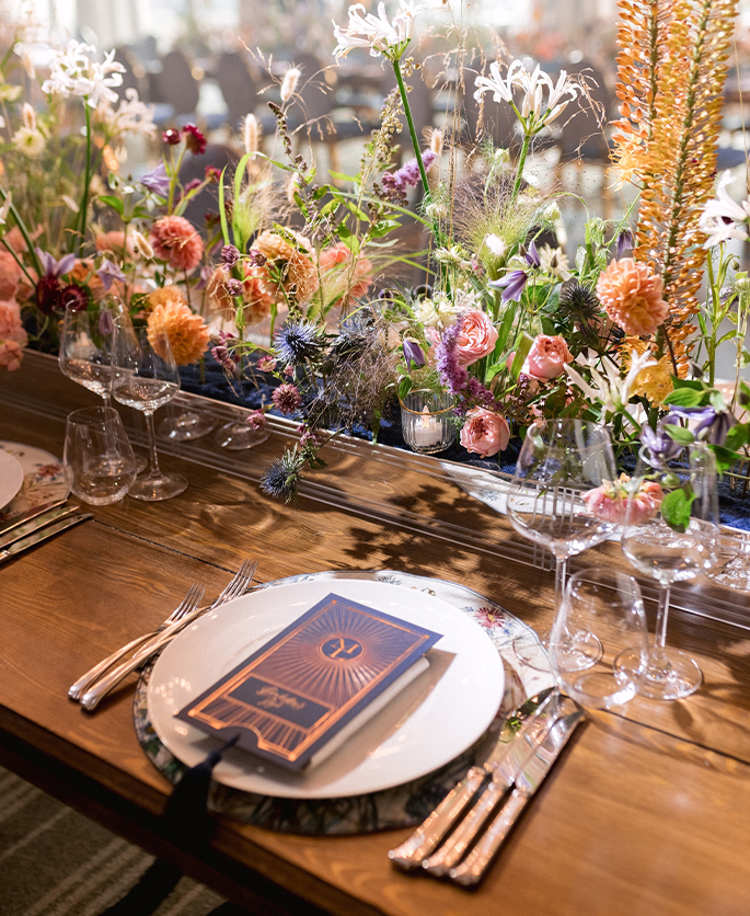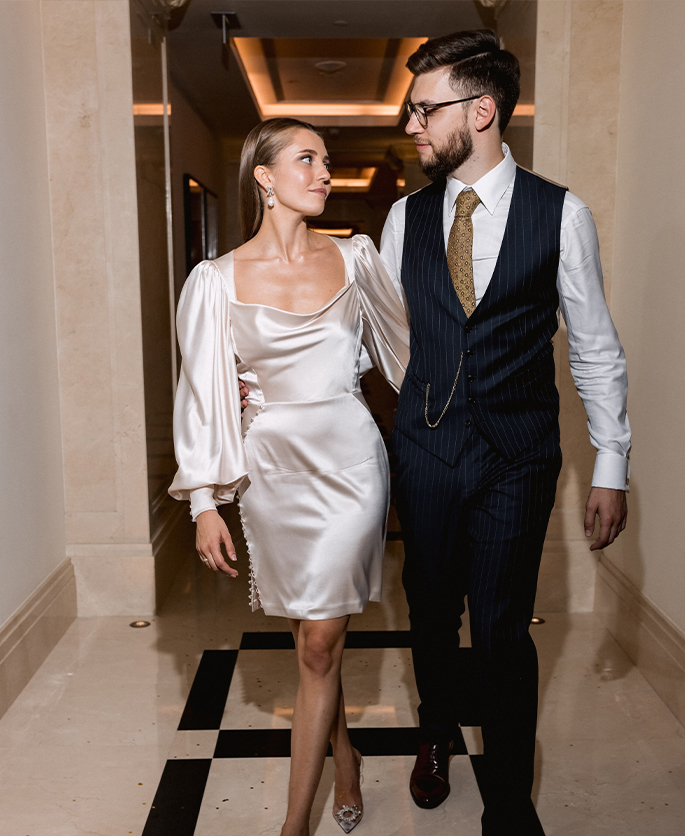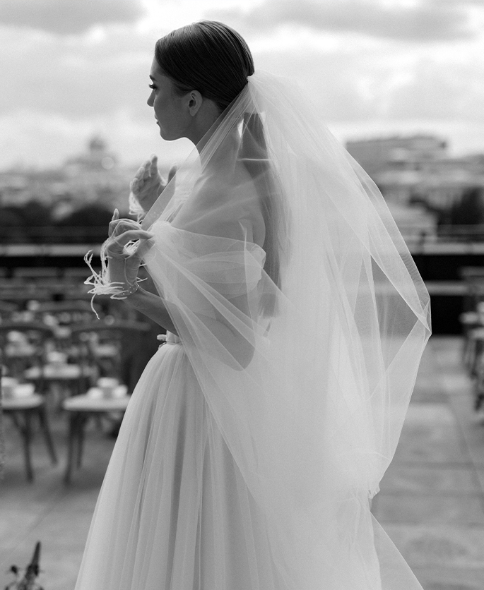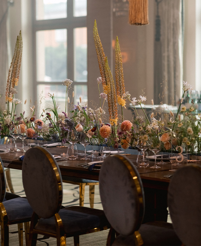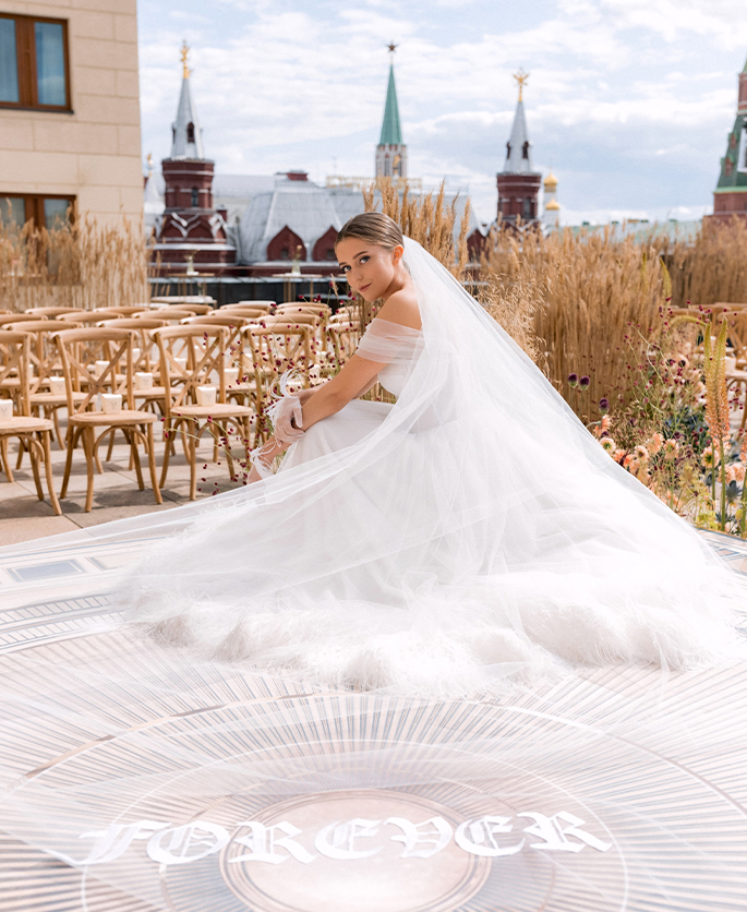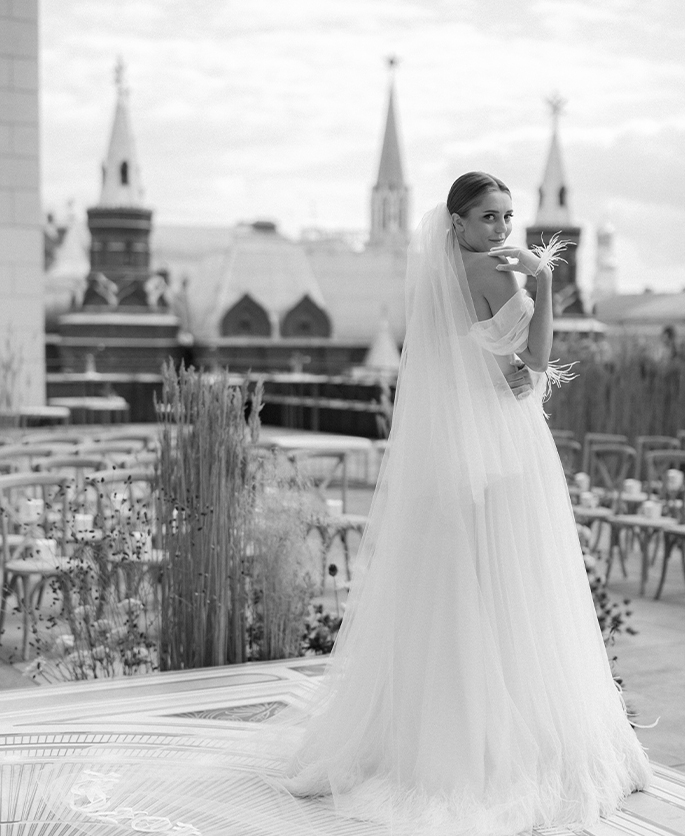 Now it is rare to find any style in its purest form. Styles are combined in interiors, authentic and natural are mixed with urban. This eclecticism is harmonious especially when it is based on character, a reflection of personality. Therefore, the harmonious combination of contrasts turned out to be a perfect foundation for the wedding concept. Chic, vintage and hand-painted details against the background of an iconic cityscape.