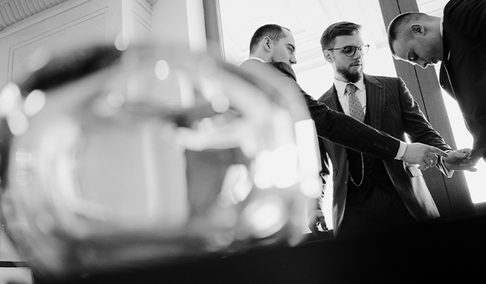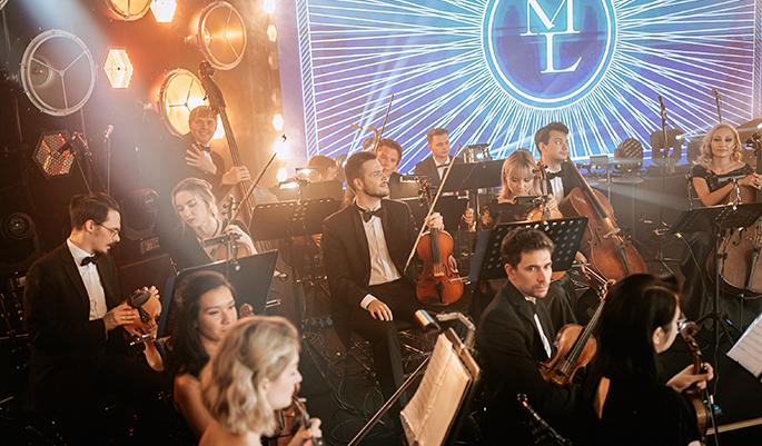 Since Misha and Lola are very versatile people, the atmosphere of the celebration simply could not help but brought out completely controversial emotions. So, during the first part of the ceremony, which took place on the roof of the Four Seasons Hotel, the atmosphere was very tender and touching. And right after that, when the couple and the guests went down to the hall, the general mood quickly changed to playful and driving! What else shall one expect, if the evening show program included a real orchestra with The Times Band, a cover band Farsh, finishing with an energetic performance by Leonid Agutin. Lots of dancing, sincere wishes from the closest ones in a warm, family atmosphere. Isn't this the perfect set for a wedding?