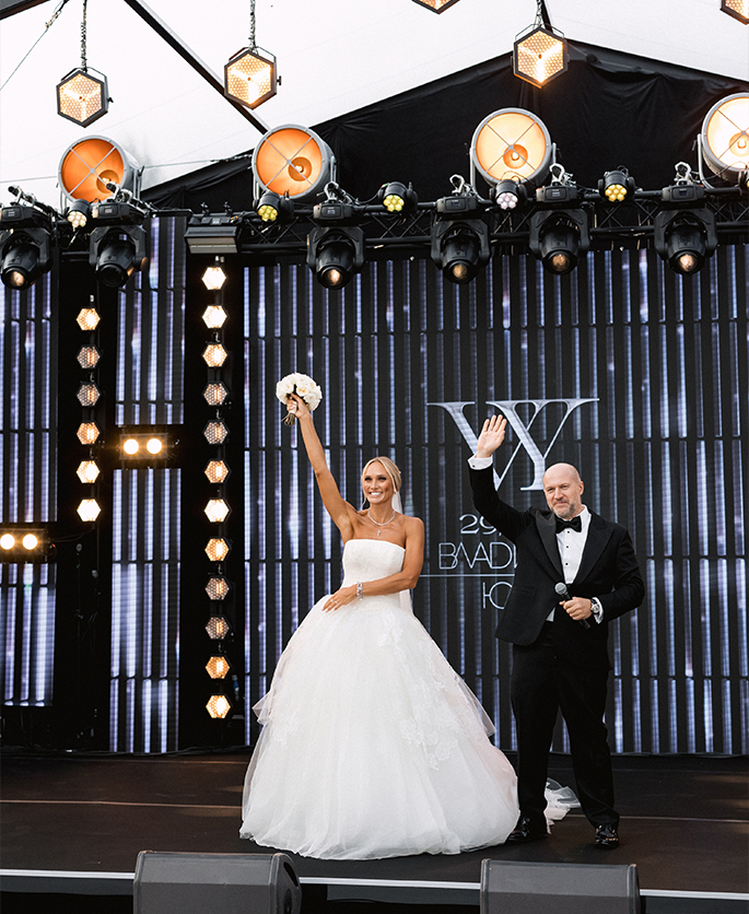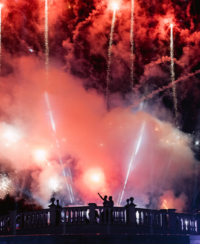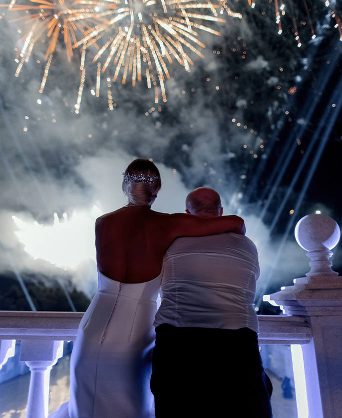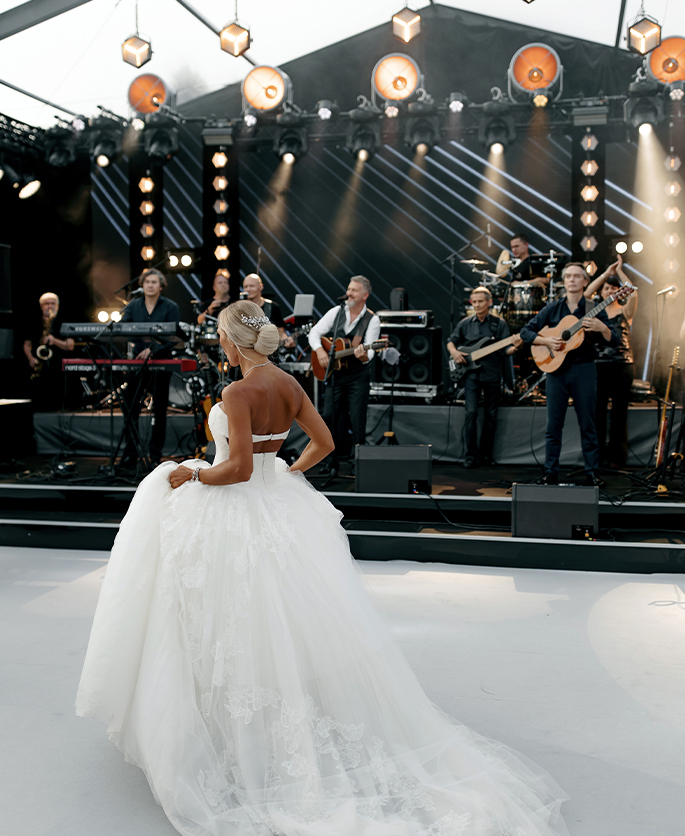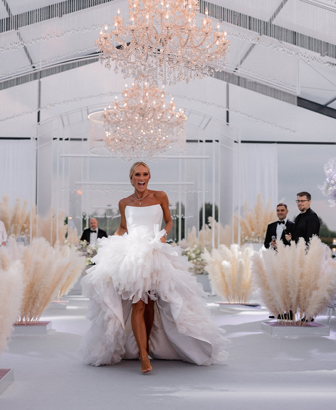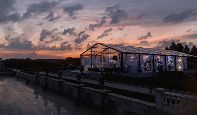 This event was absolutely outstanding! Star presenters Garik Kharlamov and Oleg Savelyev are the perfect union for such a spectacular wedding. They engaged everyone in the action starting from the first minutes. Top singers participated at the entertainment program: Leonid Agutin and Anzhelika Varum, Dima Bilan and Ksana. And the key moment was a surprise from the bride and her friends. The evening ended with an unforgettable light show with fireworks.