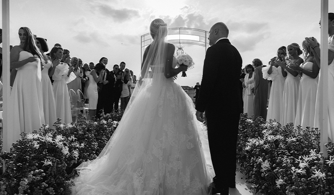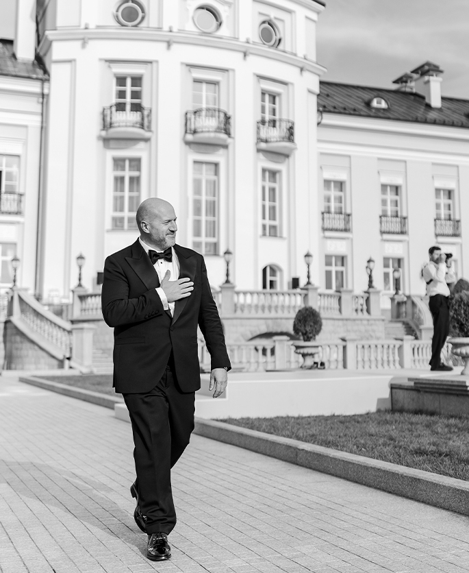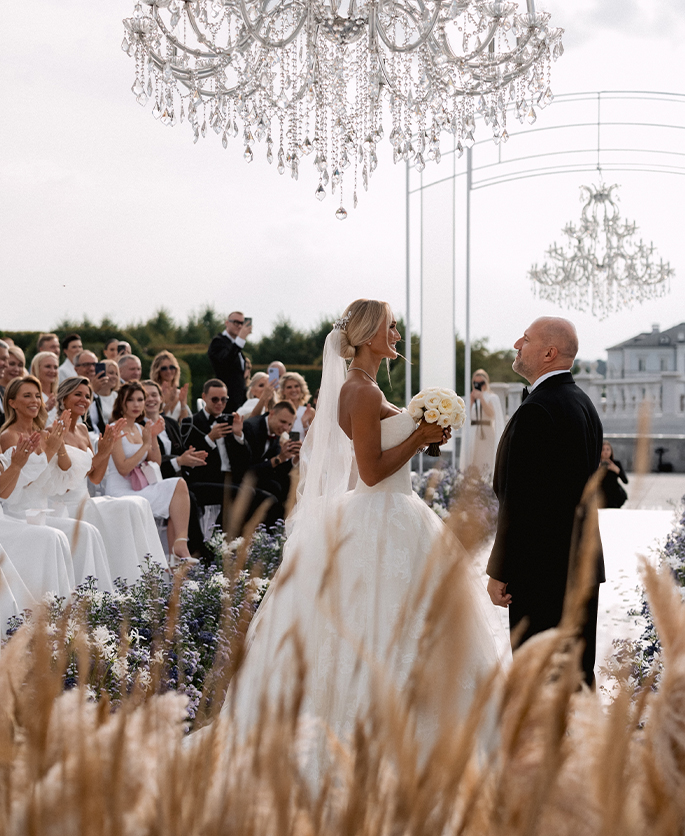 The bride initially dreamed of a beautiful wedding somewhere in Europe. But due to quarantine restrictions, the main task was to find a location in Russia with a similar atmosphere. That is why the choice of holding the celebration fell on Michetti Villa — a place with amazing energy, architecture and landscapes.