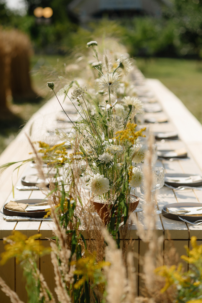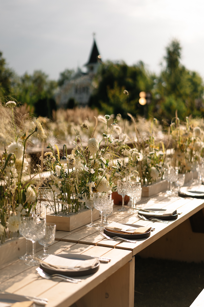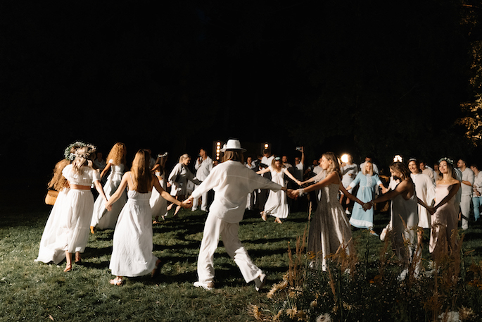 We moved away from the typical Russian solutions, but kept simple peasant elements, focusing on hay, wildflowers, and the concept of a Slavic rave for the visual program. It was stylish, monochromatic, and unlike anything done before - a celebration for a young modern couple who love techno.