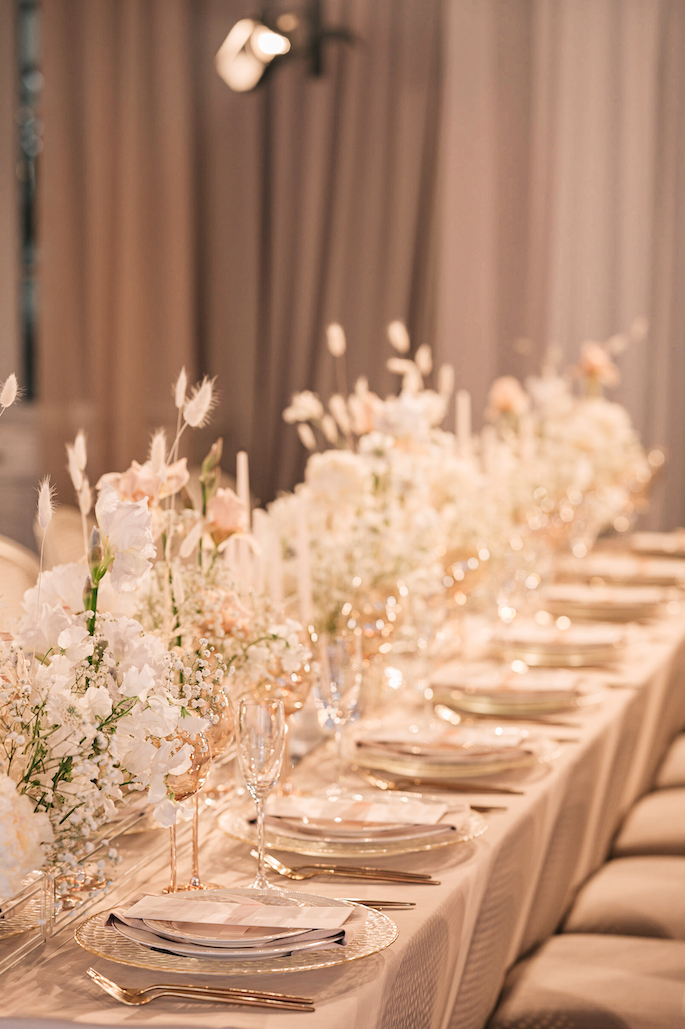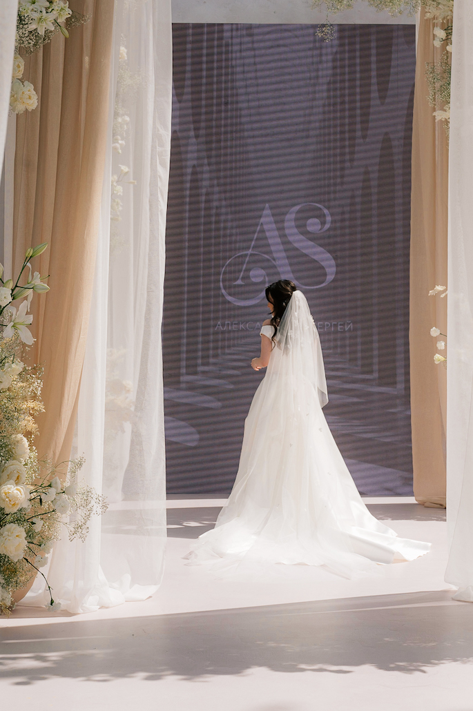 Sasha and Sergey's wedding was an event that the couple will remember for the rest of their lives due to its intimate and tender atmosphere. We carefully worked with the space to achieve this, choosing a cozy hall and filling it with warm light, playing with shades of beige and transparent floating fabrics.