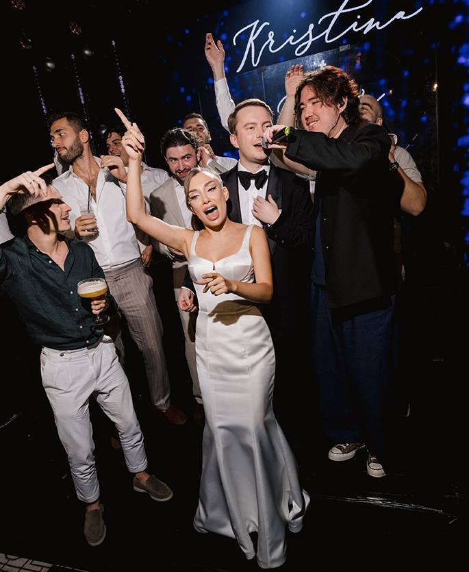 Musician and screenwriter Vasya Zorky wrote poems about the story of Christina and Fedor and their love. And the ceremony was conducted by actor Anton Lavrentiev, who read poems and performed author's songs accompanied by The Gipsy Band. It turned out to be an incredible combo, about two lovers who entrusted us to be witnesses of the most important sacrament in their lives. The music didn't end there, M'Dee and The Limba, the guys' favorite performers, sang the lines that are still running through my head: "All these words are a lie. It ain't love, baby, I'm just drunk."