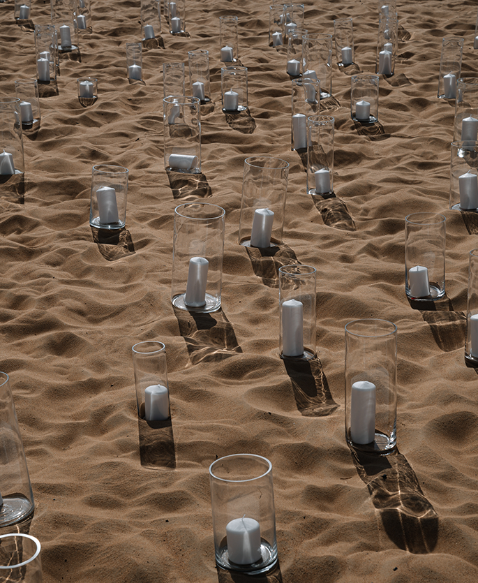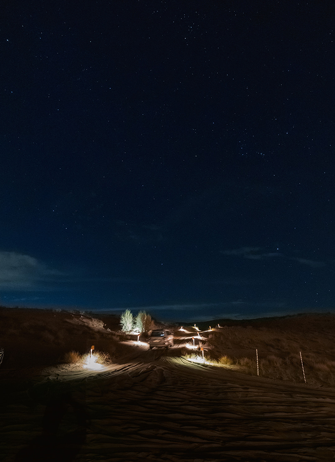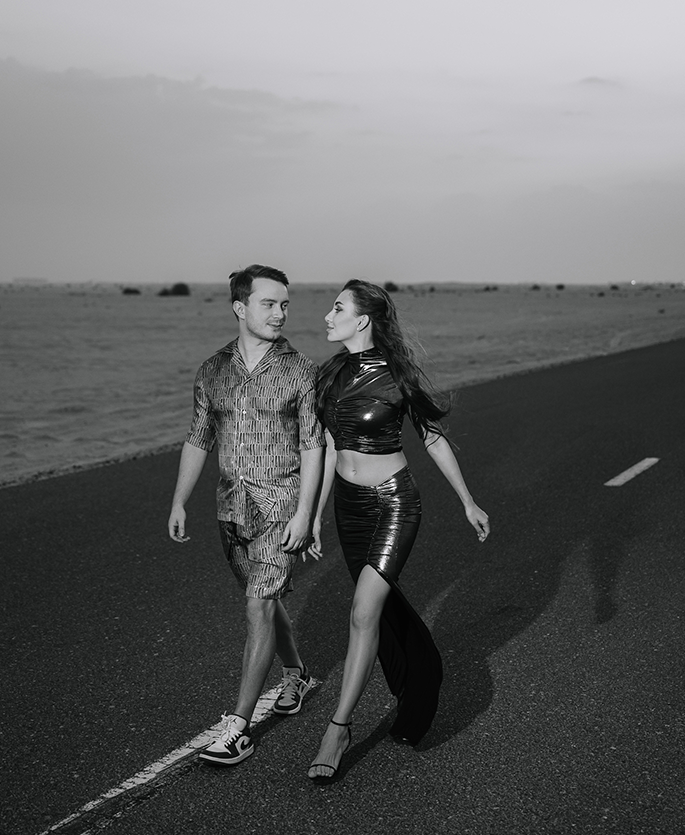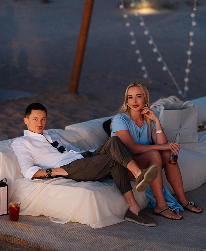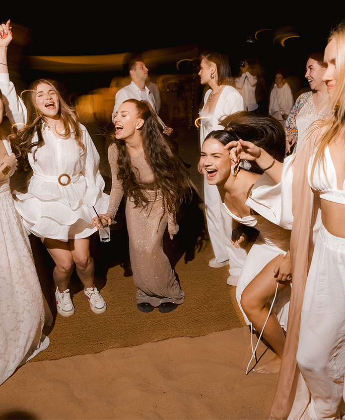 The second day we didn't overload with complicated directorial finds and let the guys get high from communicating with each other and enjoy dancing to DJ sets. By the way, the scene was made with the participation of decorator Julia Berezhnykh, it turned out so beautiful and unusual that it was impossible to take your eyes off. And when it got dark, we lit thousands of candles that were hidden in the desert sand and created an incredible atmosphere.