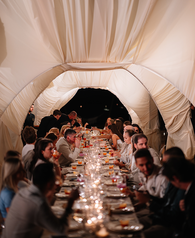 We are fans of complex projects, where you can make many locations and create absolutely different moods during one holiday. That's how it turned out here: a classic ceremony, a reference wedding dinner, a party with artists and a rave party . We think it's perfect and will be remembered by the couple, guests and our whole team forever 🖤