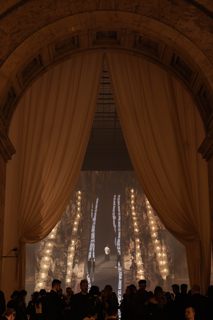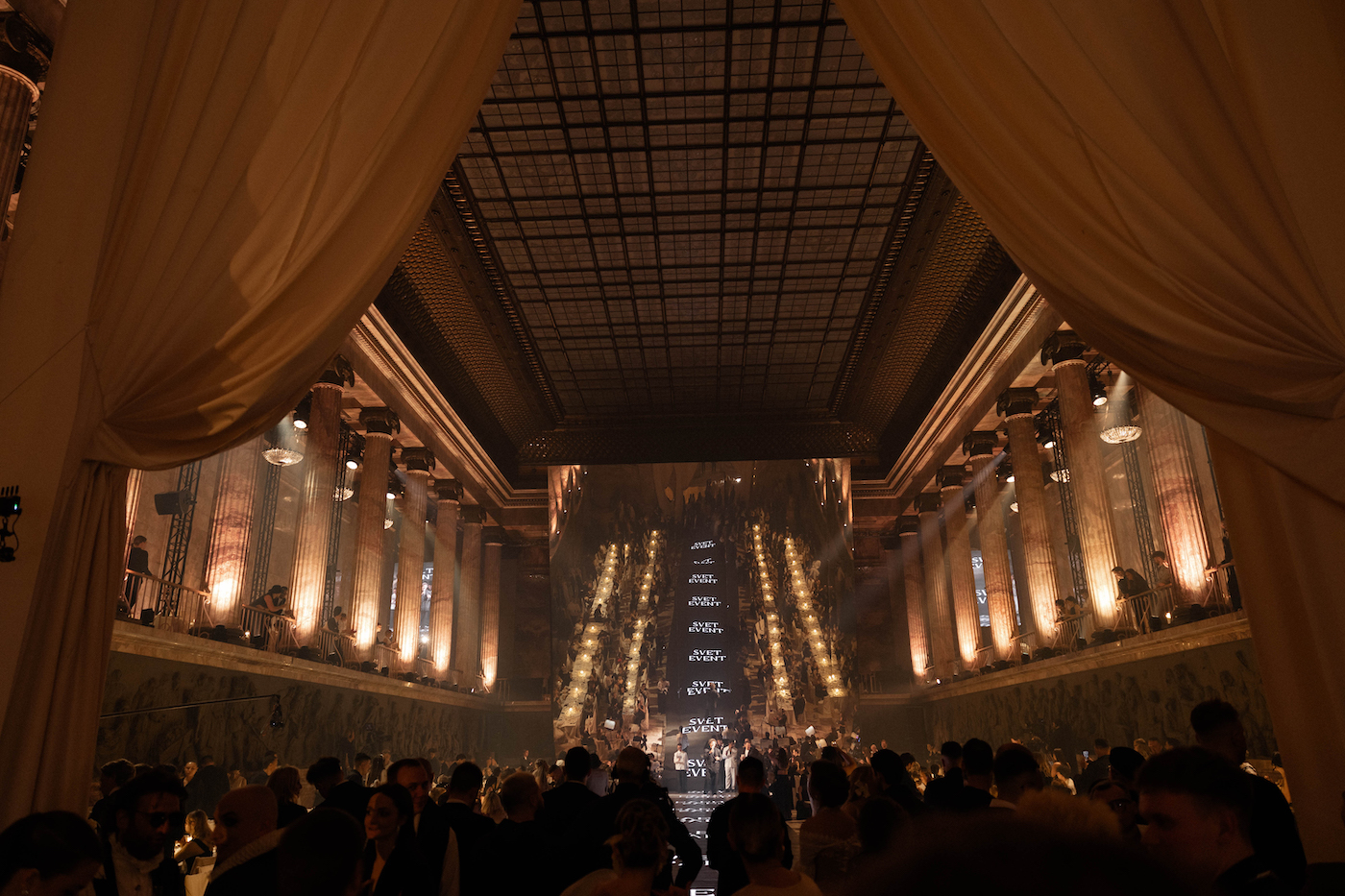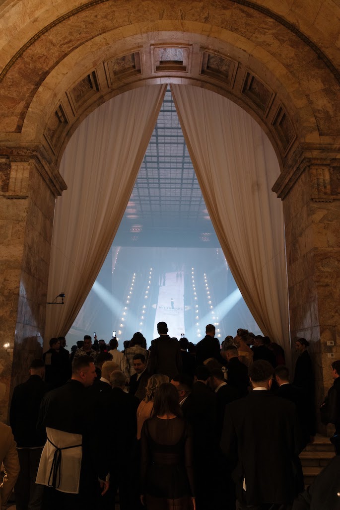 It was clear that it was necessary to take great care of the beauty of the site and, first of all, it was necessary to get rid of the screen that is present at the ceremony every time, since video content is an integral part of the entire ceremony. We thought for a long time about how it was possible to hide the screen, and the idea was born to place the screen on the floor and hang a huge mirror, which would not only reflect the content from the floor, but also add grandeur to the already large-scale Marble Hall.