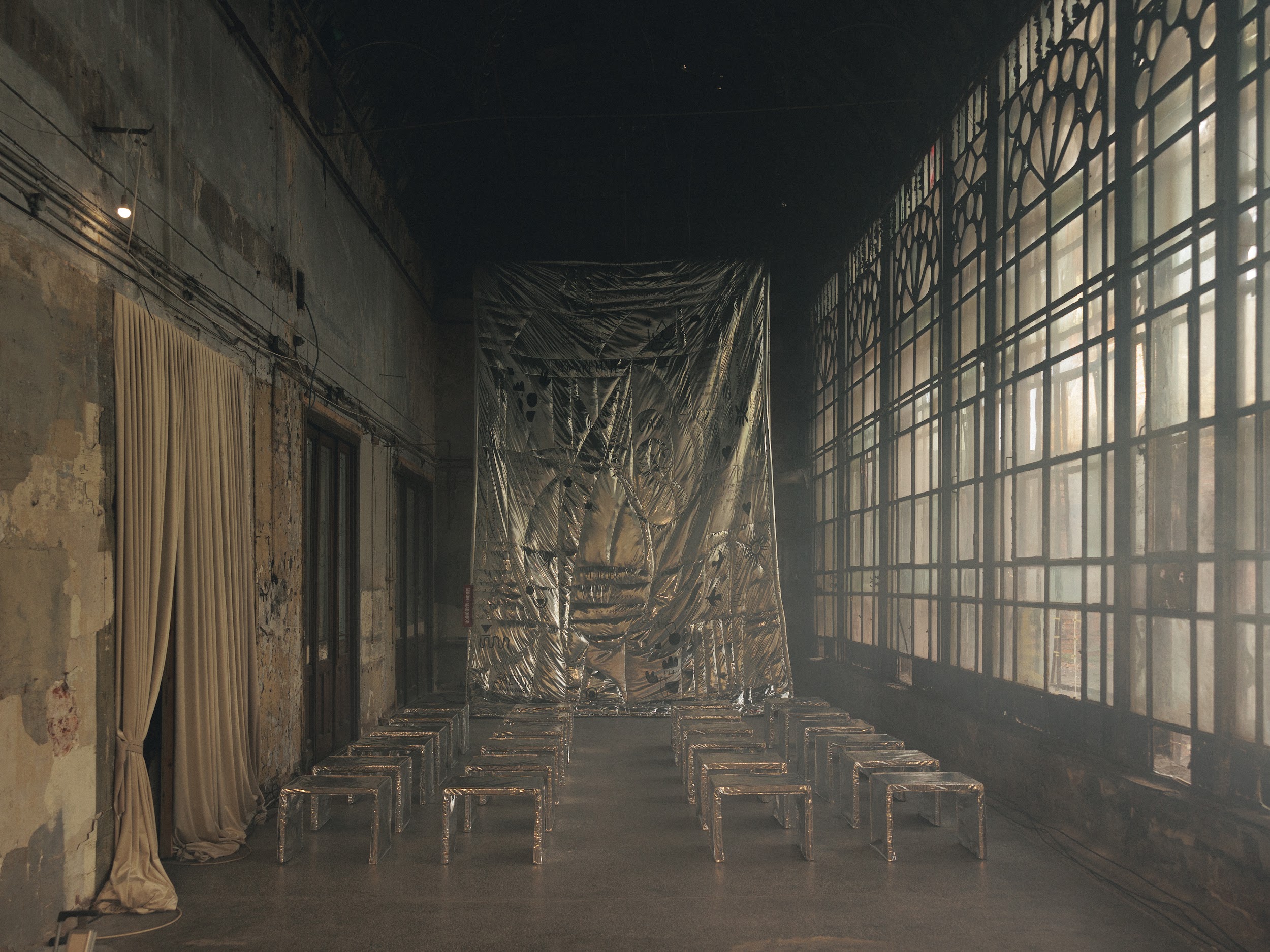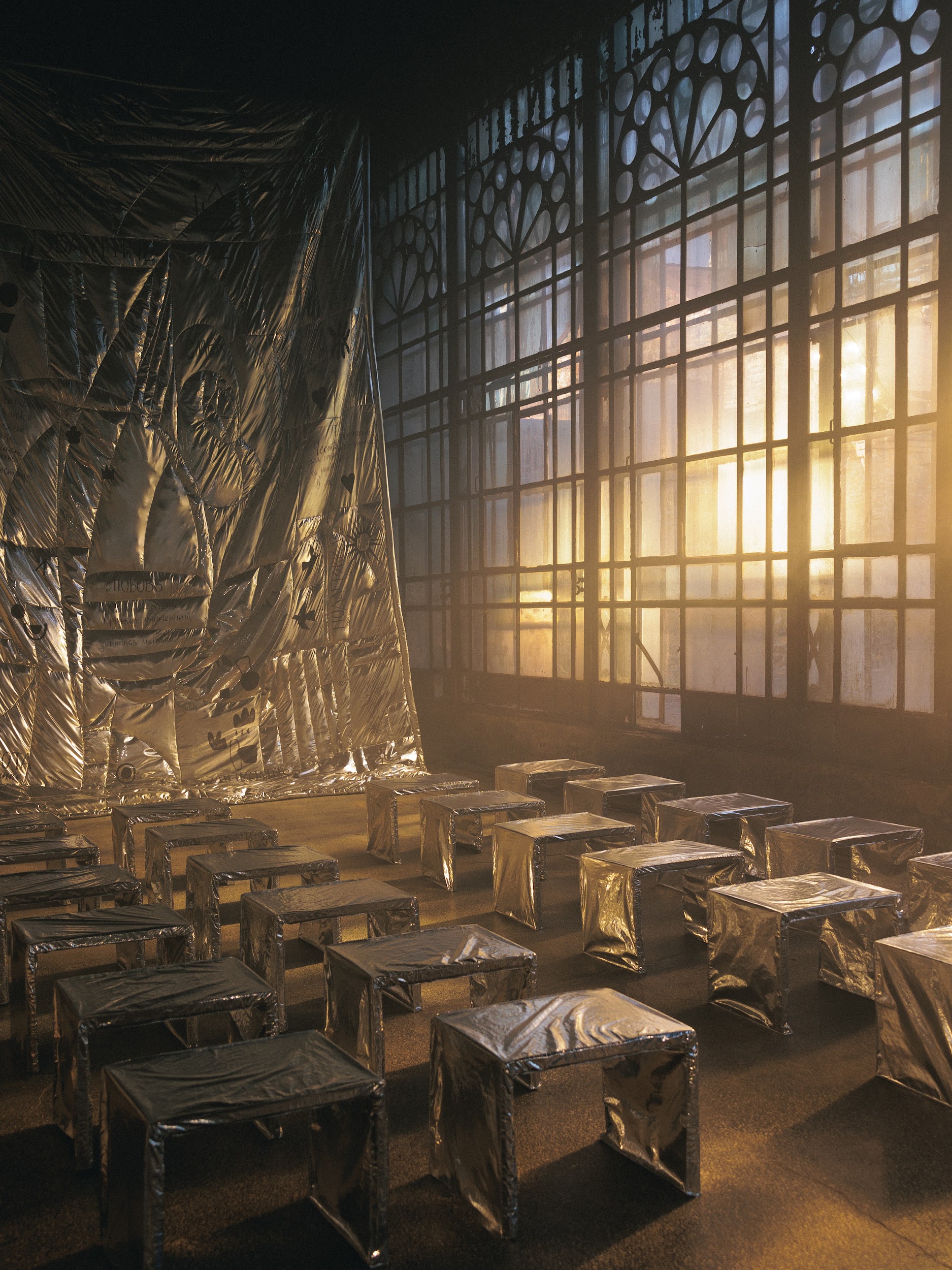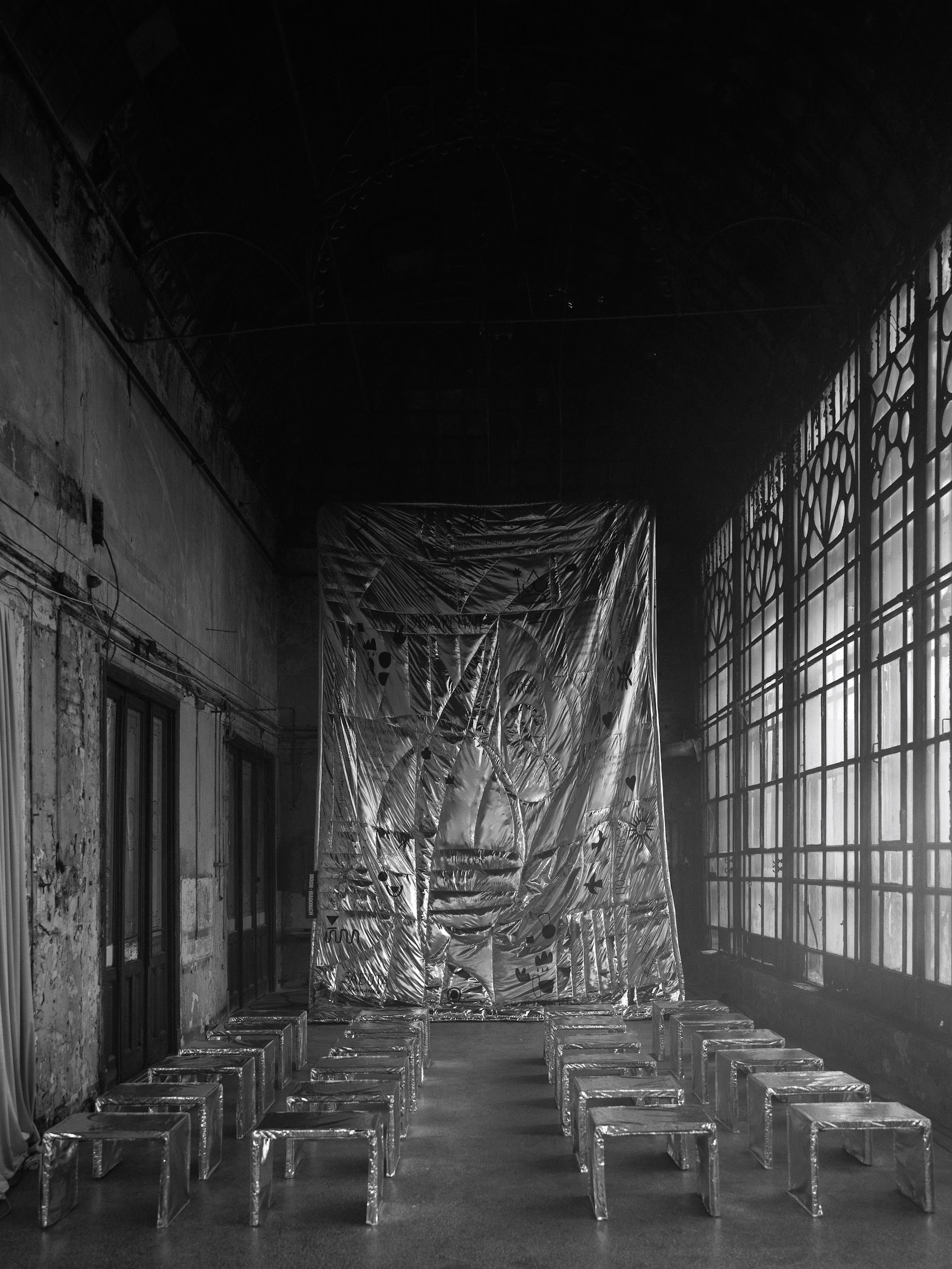 The couple signed in the morning, and not in advance or at the ceremony after the welcome party. This is great! We had the opportunity to hold a touching evening ceremony with vows in the mansion's greenhouse. We illuminated these huge windows, which everyone immediately fell in love with, from the street, and it was possible to create exactly the magic that was so necessary for such a touching moment. The mansion's greenhouse is beautiful in itself. We installed metal ottomans for the guests, illuminated the stained glass windows from the street, and also sewed a huge blanket on which lyrics that were important to our guys were written: words, their phrases and quotes.