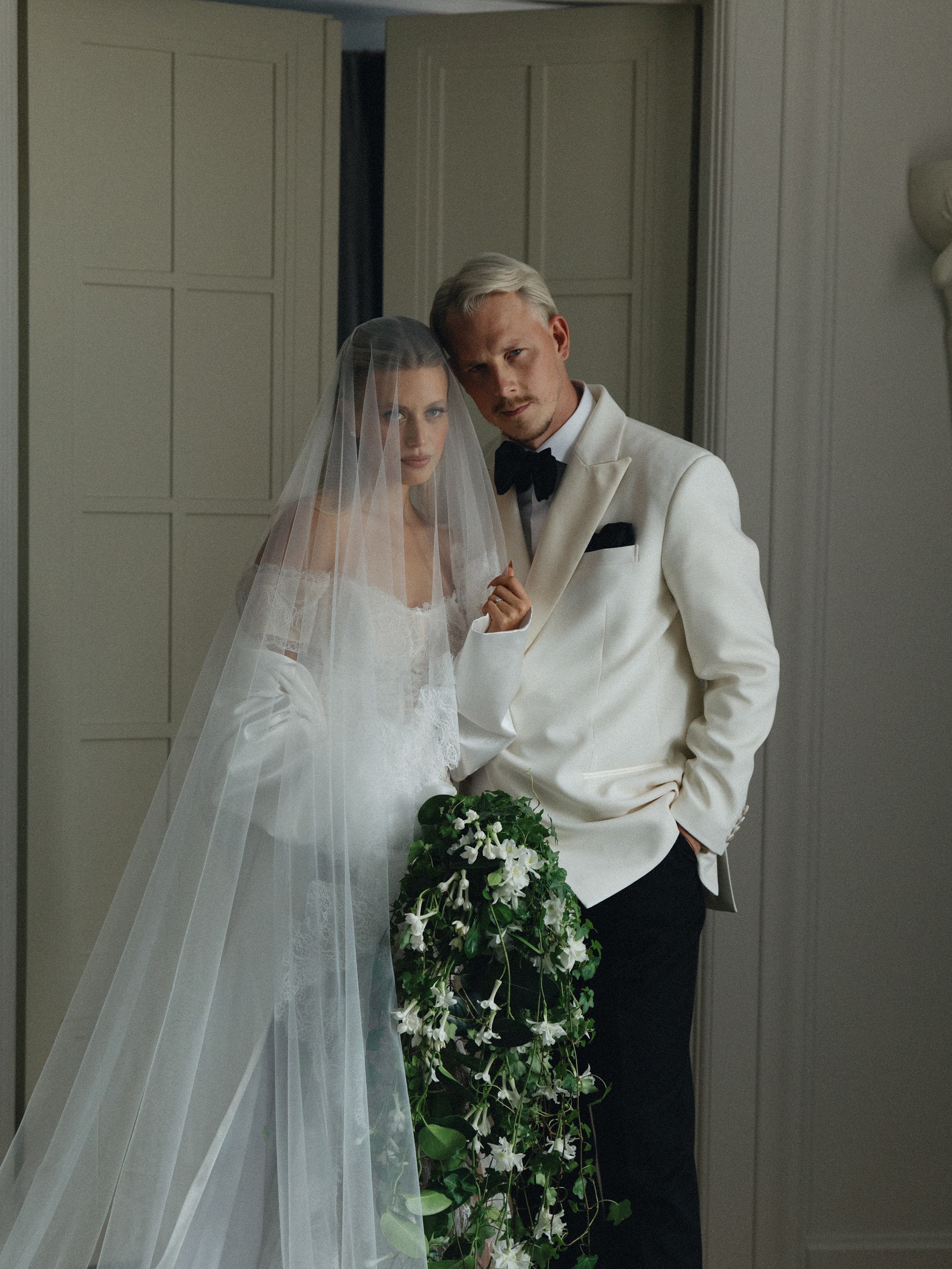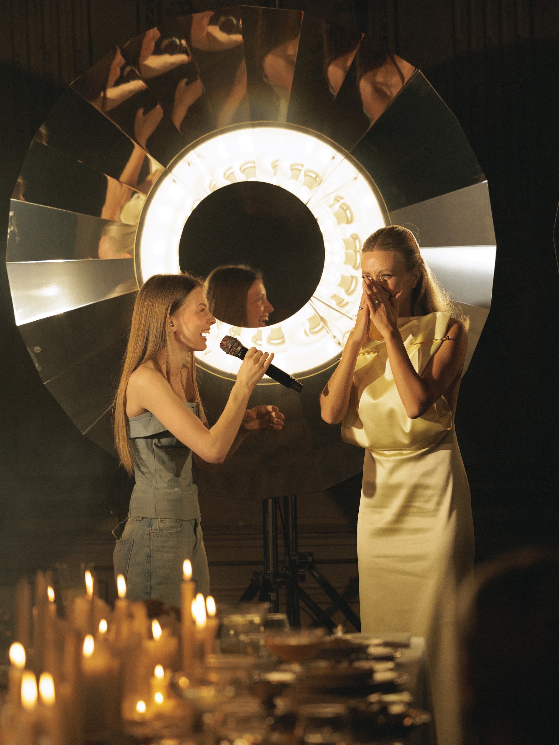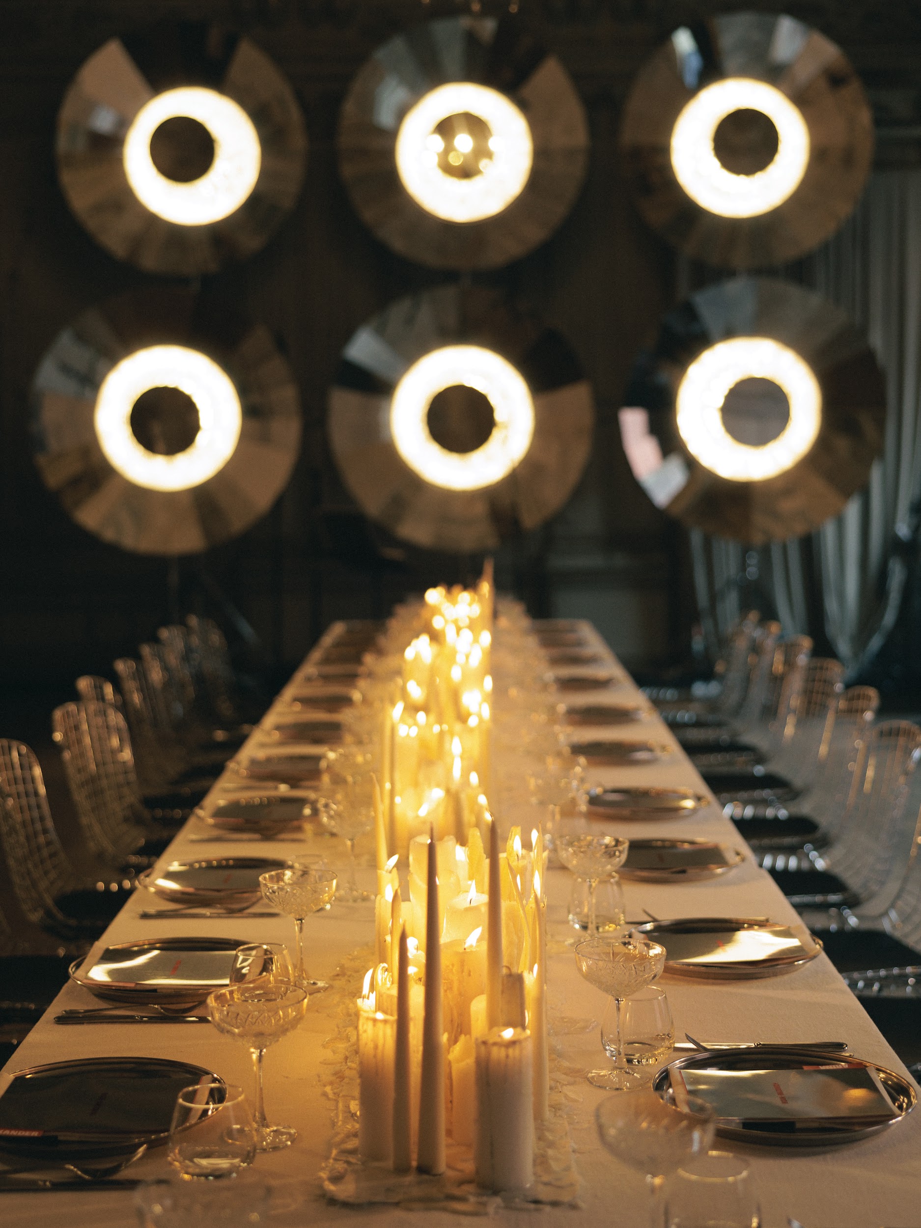As for the dinner decor, we really wanted to make it not just classic, but to show the room in a new, modern and trendy way. Therefore, we left the main room of the mansion untouched, and only placed a table there for dinner and lit candles. We installed devices that were specially made according to our sketches by Nastya Goncharova. This reflects the inner world of Katya and Misha: respect for classics and traditions, but at the same time very modern, stylish and advanced. As our team likes to say - very beautiful.