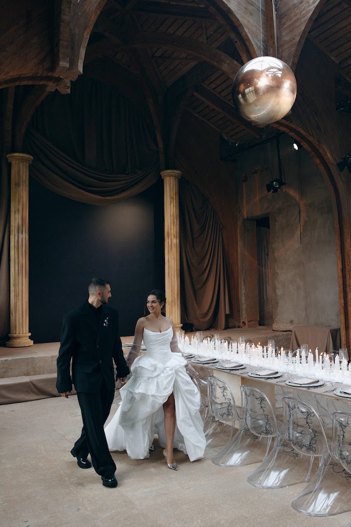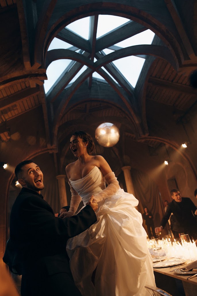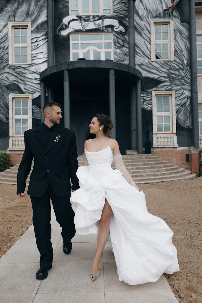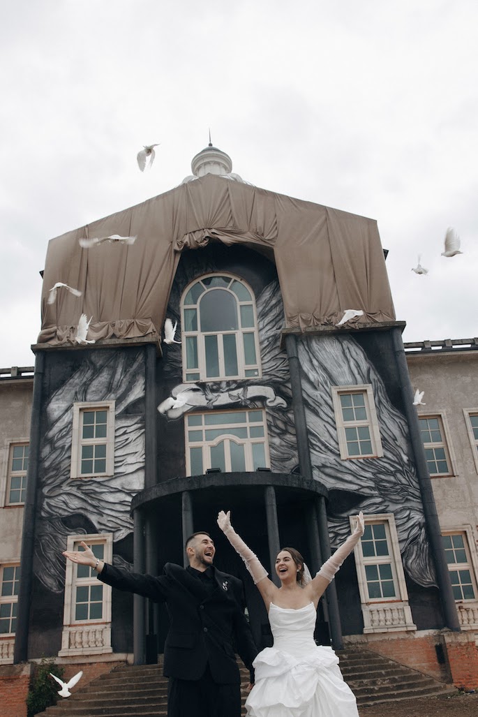 We have been eyeing the unfinished wing of Villa Michetti for a long time — the rough wooden arches of the interior and the bare walls of the facade created a unique atmosphere. When Nastya and Artyom contacted us, we immediately said that we had a dream for a long time and showed the playground to the guys. When they saw this place, they also immediately fell in love.