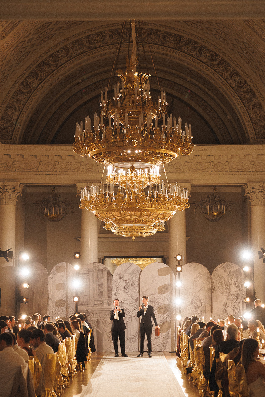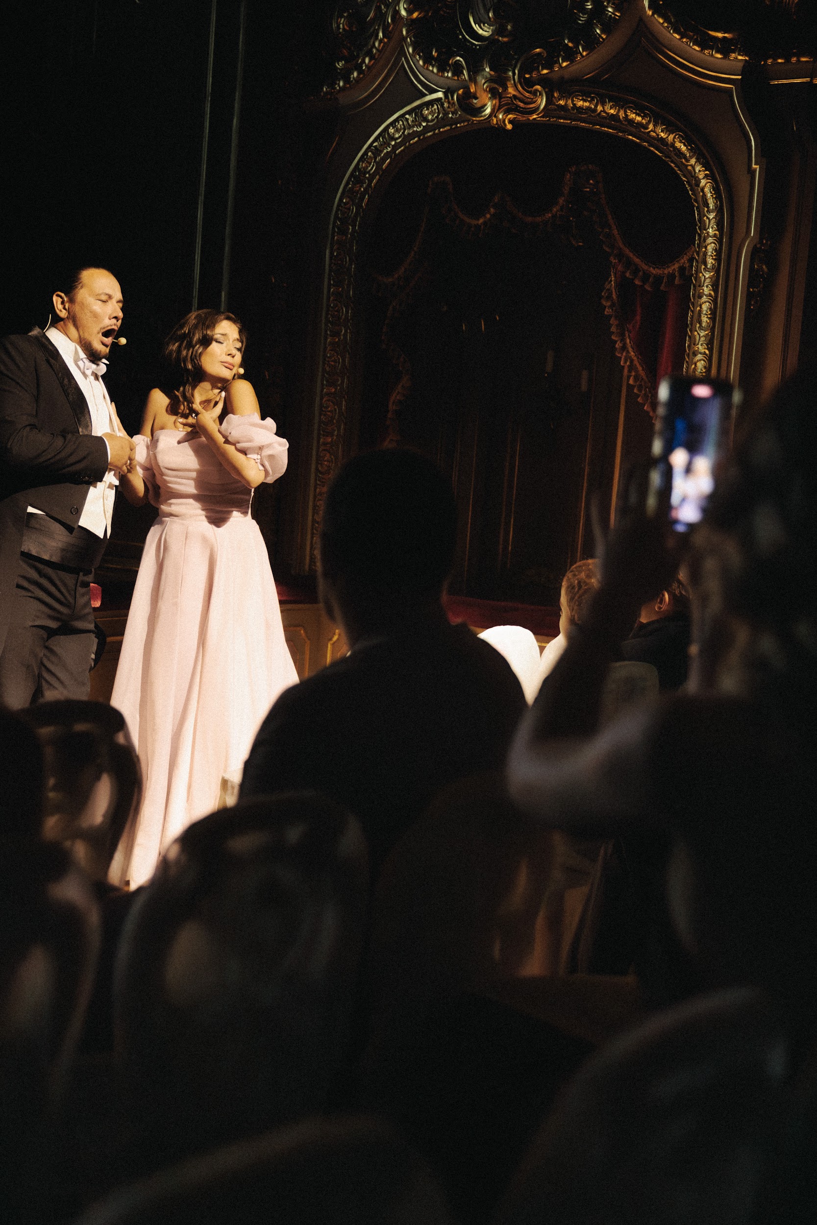 The apotheosis of the evening was the Yusupovs' home theater, the stage where Chaliapin, Pavlova and members of the dynasty performed. Ella and Roma continued the family tradition by inviting the guests to the performance. The program combined Russian ballet, opera and a string orchestra. It all started with a dialogue between the bride and groom, who appeared in the imperial boxes. Their sincere conversation about love became the prologue and leitmotif of the whole action.
