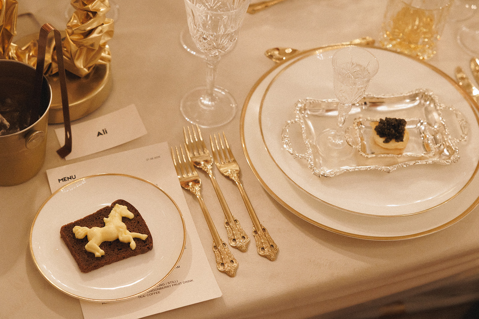 The evening was built on interactive content. We held an auction where not only copies of legendary items from the Yusupov collection went under the hammer, but also personal lots from the history of Ella and Roma: a golf ball from a joint tournament or a teddy bear - Roma's first gift to Ella. So the guests took away not just souvenirs, but a piece of their love.