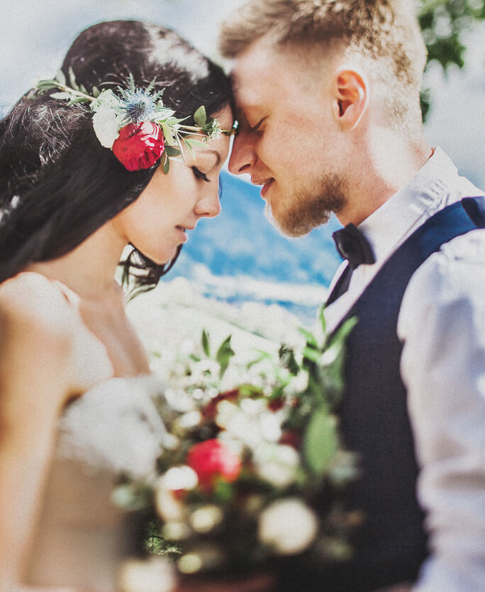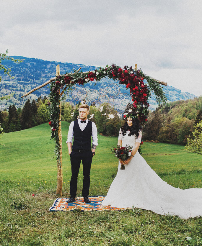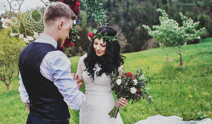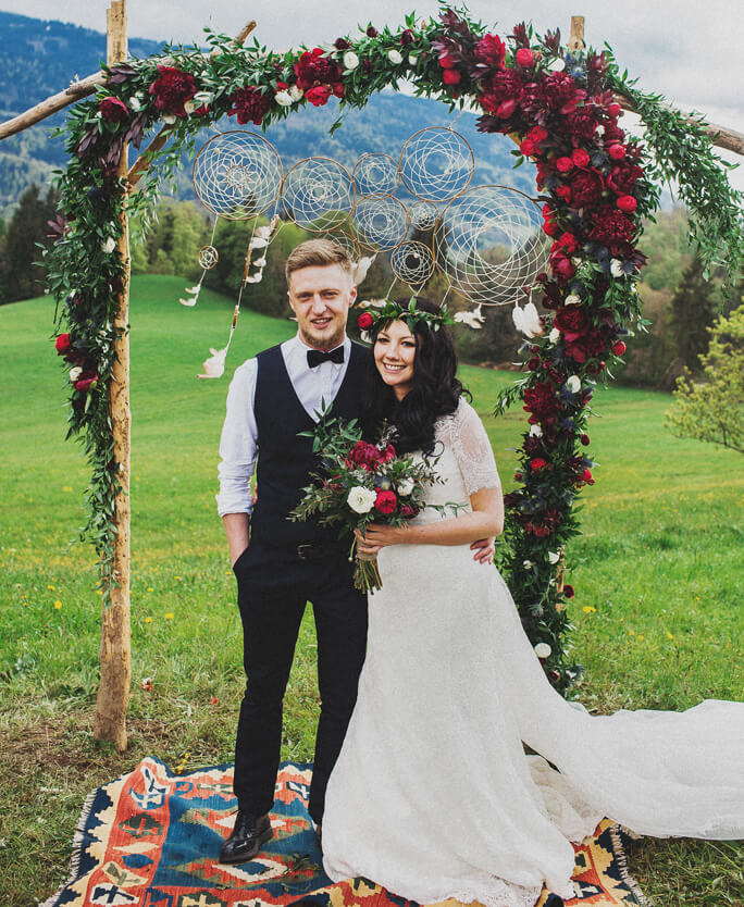 Our dear girls! It has been one month and a half after our weddings but we still remember even the smallest details of our celebration. We can’t calm down! It was so wonderful and amazing, that we look through our photos again and again and want to return back, to relish those wonderful moments and to feel that magic atmosphere one more time! Since that day when Sasha proposed we had been nervous about planning our wedding. We had many questions: what, where, how… We don’t like massive and posh celebrations with white doves and cakes as high as the Eiffel Tower. That’s why we were extremely fastidious while selecting the wedding agency. We didn’t like any of them. But then we found your agency by chance and I sent you our message. I also remember how we met with you for the first time. It was a very pleasant, informal and comfortable meeting. We had a long conversation and realized that we had made the right choice. Whatever we talked about, our tastes were almost always similar. It was extremely important for us! Together with Sasha we thought that our wedding would be outstanding, colorful and that you will support our idea to use roaches, dreamcatchers and skulls we absolutely obsessed with. It was a great pleasure to meet with you. The most important thing is that our meetings didn’t remind of typical talks between contractors and their clients. Many agencies make this mistake. All meetings with the wedding planning agency Dlya Dvoih took place in a friendly atmosphere. They were funny, heartwarming and casual. And of course our wedding was extremely important for us. We were so nervous before our trip, because we almost went it blind. And the result was amazing! What scenery, what chalets, what atmosphere we had! And the ceremony itself was marvelous! My skin still crawls when I think how beautiful it was. The arch, the location… It was just like we wanted it to be! We and our guests were amazed that everything was thought over to the smallest details! It was so magical, that one can only imagine! I want to thank everyone in particular. Big thanks to our decorator Dina Yakushina: I can thank her non-stop for everything — for hand-made dreamcatchers, for skulls, that we hang in our flat after the wedding, for the roach, for all boxes for wedding rings, flowers, ottomans and especially for her crazy energy, creativity and positive state of mind. I have no idea how to live without your calls and our meetings. Thank to our adorable photographer Anna Kozdurova for her attention and patience, for just unbelievably fantastic photos! When we saw our love-story edited within only one day, we were in the aesthetic entrancement! I want to show every person on the street the photos of our wedding day, because they are full of emotions and heartwarming! I also thank very positive MCs Smile Brothers for their unobtrusive, kind and witty jokes and speeches and for their charming video. Another thanks to our DJ that followed our play list and refused to requests of all our relatives who wanted to listen to the Leps’s songs))). We also thank our videographer Alexander Kuraksin not only for the video but also for the fact that he brought our huge box with dreamcatchers and skulls from France to Moscow, that we just couldn’t leave there.)))And, of course, big thanks to Masha and Nastya for brain storms and for digging holes for our wedding arch in the rain. And for everything that you did! Special thanks to the owner of chalet Debbie (she won’t see it, but still). She is great! All our guests were happy and satisfied! Big thanks to the workshop that made our invitations. We were very proud to give them to our guests!))) Last but not least is that we want to say thanks to everyone who was left beyond our attention. Guys! We didn’t see you but we appreciated everything you had done for us! We are very thankful to all of you and pleased that exactly agency Dlya Dvoih planned our wedding and made it so unique and magic! We are happy that in this special day we spent in such stunning atmosphere! You have all rights to be called the best wedding agency!